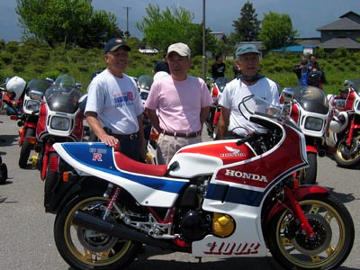 ホンダFMOCユニオンミーティング そして素晴らしい天気の中、白馬から会場の安曇野インター近くの「安曇野スイス村」に向かいます。 月並みですが、高原の空気は本当に美味しいです。それも1100Rの仲間と、顧問の方々と同じ空気を吸っている・・・このためにこの1年間を過ごしてきました。 今回ご協力をいただいているのは、CB750カフェ(RCBレプリカ)を制作したホワイトハウス、CBXスペシャルショップのリモーション、そしてHondaBikes誌とMr.BikeBG誌です。 とにかくいい天気で、あちこちで話の花が咲きます。 ミーティングの司会進行は私が仰せつかりました。つたない進行で皆様にご迷惑をおかけしました。次回からはもっと勉強します(笑) 山中顧問はNRのLPLを努められました。また、森岡・大森顧問のペアでここのほとんどのバイクを作っています。 クラブ単位、全体で集合写真を撮り、いよいよミーティングも終了となります。 CB750ドリームクラブはすぐにツーリングに出かけてゆきます。そして私達も東京に向けて帰路に着きました。みんなにもらった大きな感動を胸に・・・